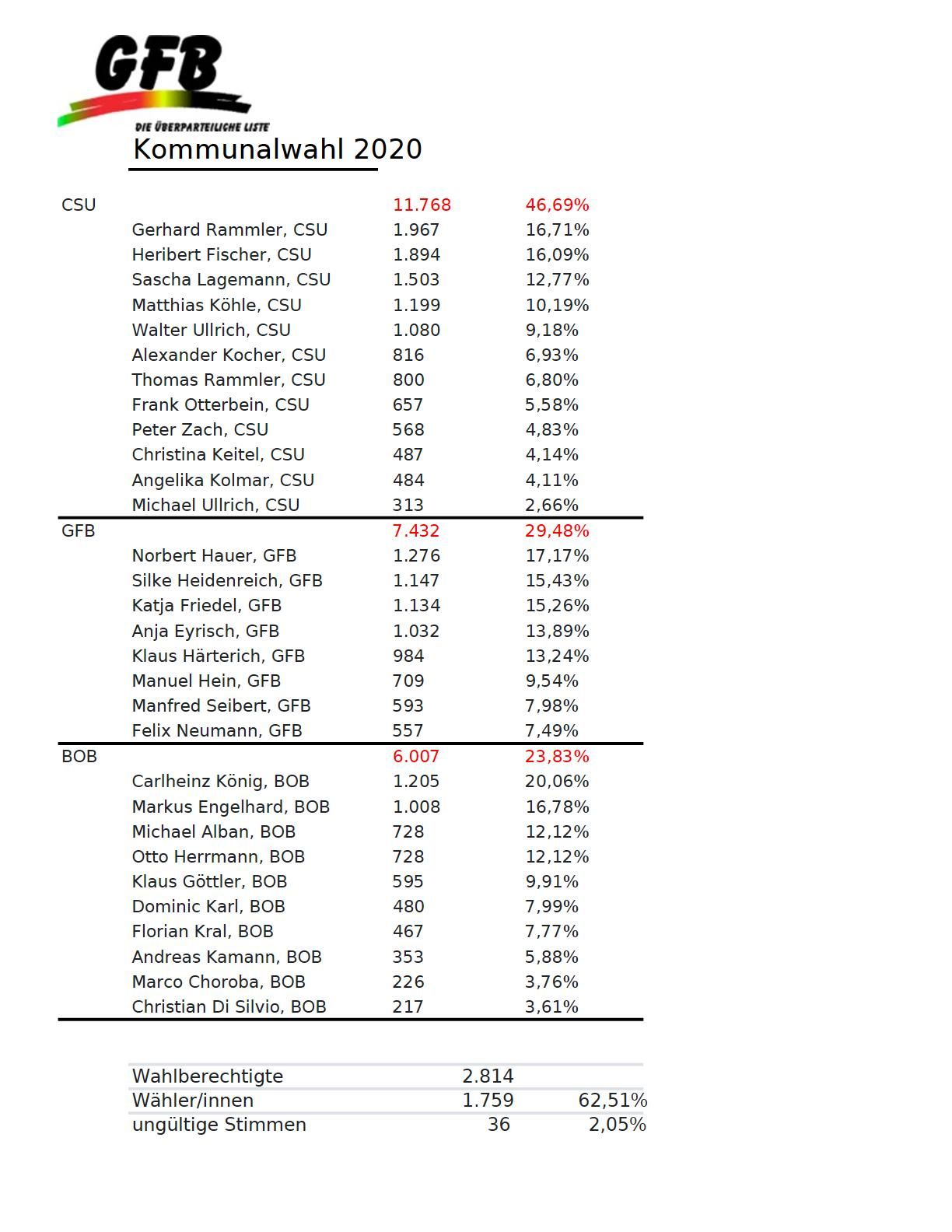 Ergebnisse der Kommunalwahl 2020